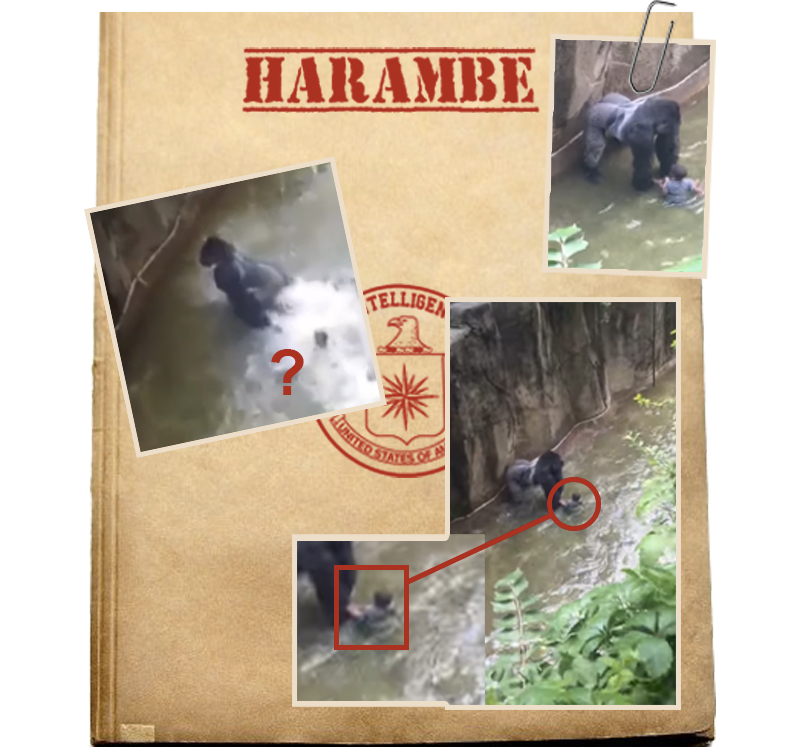 Le 28 mai 2016, au zoo de Cincinnati dans l’Ohio. Un enfant tombe dans l’enclos des gorilles. Un des gorilles, Harambe, l’accroche et le traine avant de se faire abattre. Une histoire tragique qui a provoqué de nombreux débats sur internet pour savoir s’il était légitime de tuer Harambe. Mais tout cela n’était qu’une manipulation organisée par l’entreprise Mirage Kult, filière de l’entreprise Doogle, pour éloigner les gens du vrai débat. En effet, ce que l’on nous cache, c’est que l’entreprise avait lancé ses premières expérimentations sur plusieurs animaux du zoo. Nous ne savons aujourd’hui toujours pas en quoi ces expérimentations consistent mais plusieurs personnes avaient rapporté le comportement violent de l’animal. On se doute bien que les expérimentations avaient dérapé et que l’animal était devenu hors de contrôle.